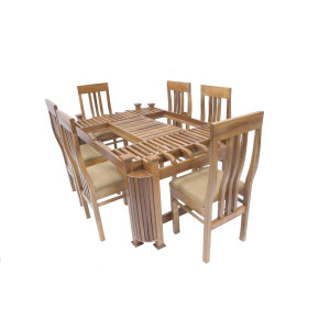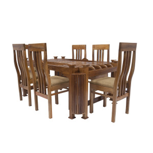 Premium Design Glass Top Teak Wood Dining Table (6ftx4Ft) with 6 Chairs