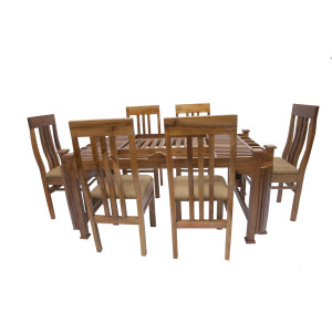 Premium Design Glass Top Teak Wood Dining Table (6ftx4Ft) with 6 Chairs VDT0125
